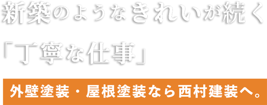 “西村建装”では「丁寧な施工」をモットーに外壁塗装の施工を行い、新築のようにきれいに塗り替えを行います。